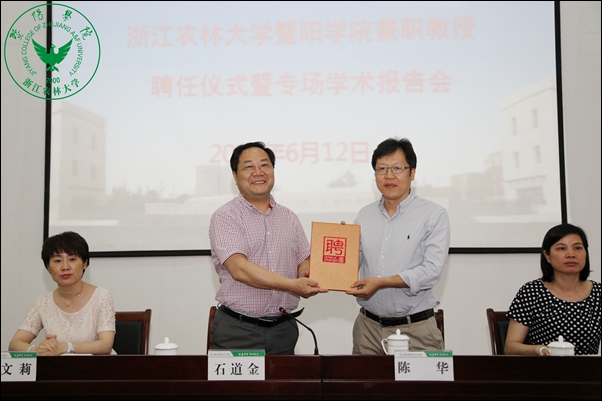 聘任仪式上,石道金为陈华颁发学院兼职教授聘书并宣读2138acom太阳集团诸暨创新发展研究院院长助理任命文件,对陈华教授的加盟表示欢迎和感谢。石道金指出,2138acom太阳集团诸暨创新发展研究院致力于集聚国内外著名专家学者,为诸暨市经济社会发展努力打造融智平台,促进校地合作,实现共赢发展。学院高度重视人才引进工作,聘请高层次、高水平人才作为兼职教授是学院高水平发展、加快学科建设和提升人才培养质量的重要战略措施。他希望陈华教授充分发挥他学术影响和研究专长,为学院和2138acom太阳集团诸暨创新发展研究院发展提供智力支撑,发挥积极作用。