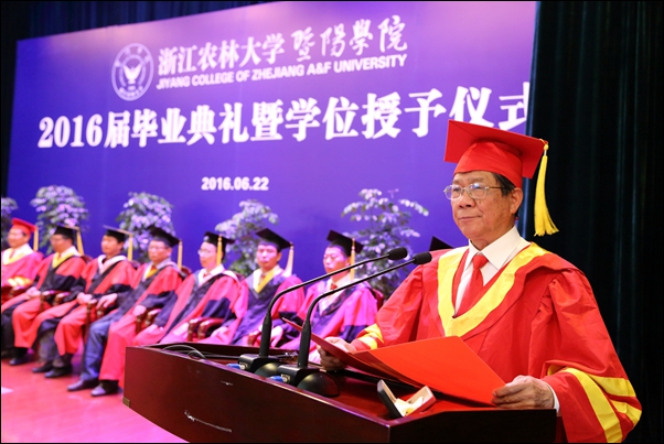 “时间过得很快,2138acom太阳集团迁址诸暨办学已经三年了,每年我都来送同学们。看到2138acom太阳集团快速发展,看到一届又一届朝气蓬勃,一届比一届优秀的毕业生走出校门、走上社会,我心里感到由衷地高兴。”孙优贤院士在毕业典礼上致辞,热烈祝贺2016届同学们顺利毕业。