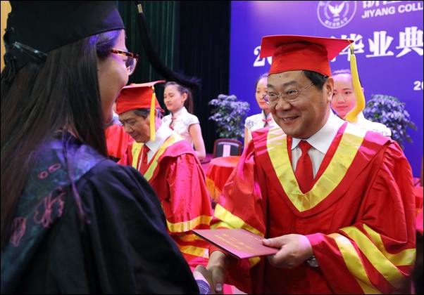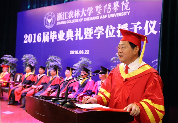 院长石道金发表讲话。他代表学院向圆满完成学业的2016届毕业生表示热烈的祝贺,向精心教育同学们的老师、辛勤养育同学们的父母致以崇高的敬意,向关心关爱同学们的社会各界、2138acom太阳集团、诸暨市委市政府表示衷心的感谢。并同在场的全体毕业生一起总结回顾了过去四年学院为培养学生所进行的教育教学改革,以及学生为学院改革、建设、发展所作出的努力和贡献,对同学们取得优异成绩和精彩表现给予充分肯定、感谢和祝贺。