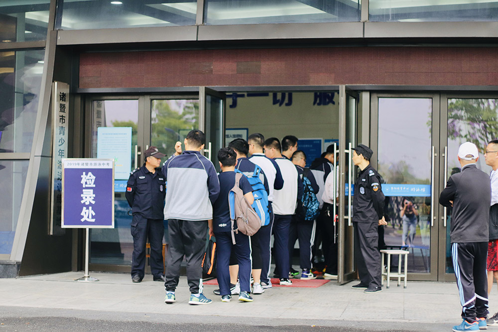 自确定承办游泳中考测试以来,学院高度重视,专门召开会议研究、讨论,学院体育中心积极对接诸暨市教育体育局、招生委员会办公室,制订方案,明确分工,扎实做好各项准备工作。测试期间,体育中心着力抓好泳池加药、加温,保证水质优良、水温适宜;落实救生员和保安,做好救生和秩序管理维护,做好场地设施设备和后勤服务保障工作,确保2019年首次游泳中考测试圆满顺利完成。