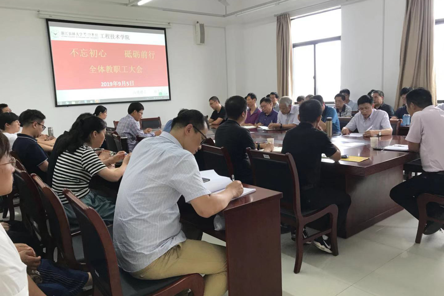 徐爱俊院长对工程学院近几年在教学科研、社会服务、党建思政等各方面取得的成绩给予了肯定。他指出,工程学院当前面临诸暨市传统产业改造升级的大好形势,要趁此机会提高服务地方的能力,着力培养“双师型”人才;要积极探索与农林本部联手、与地方企业联合的工作机制,争取外部资源,实现快速发展。同时,他指出,要进一步转型和深化实习基地建设,既为企业提供智力支持,也为人才培养深化实践途径。他希望,工程学院进一步结合学生成长需求,以学科竞赛为抓手,提高学生动手能力和创新能力,形成独具特色的人才培养模式。他希望全体教职工激发建校爱校情怀、胸怀远志实现梦想,迎风而上、不惧变革,在学院“三步走”发展战略中实现个人价值。
