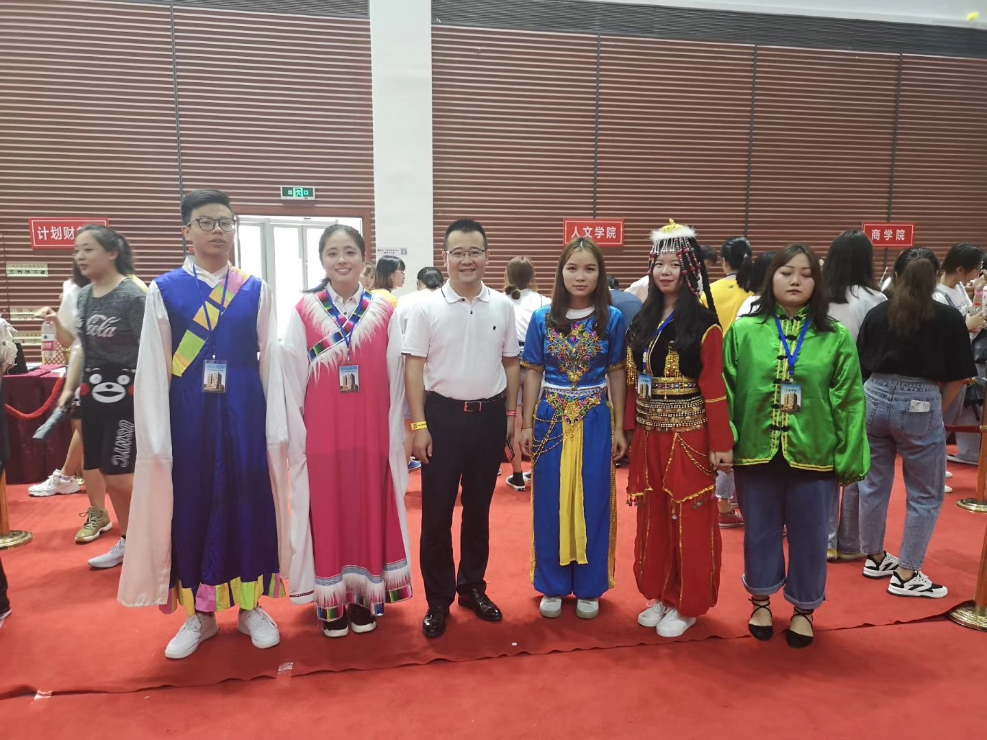 “手牵手,心连心”一场别开生面的欢迎仪式在网球馆展开。身着少数民族特色服装的志愿者们与少数民族报道新生手拉手围成同心圆,旋转并舞蹈,以此表达对报考我院的少数民族新生们的热烈欢迎。党委书记潘国忠亲临现场,对少数民族同学进行了关心和慰问。据悉,人文学院2019级新生当中少数民族新生达到24名,为全学院最多。