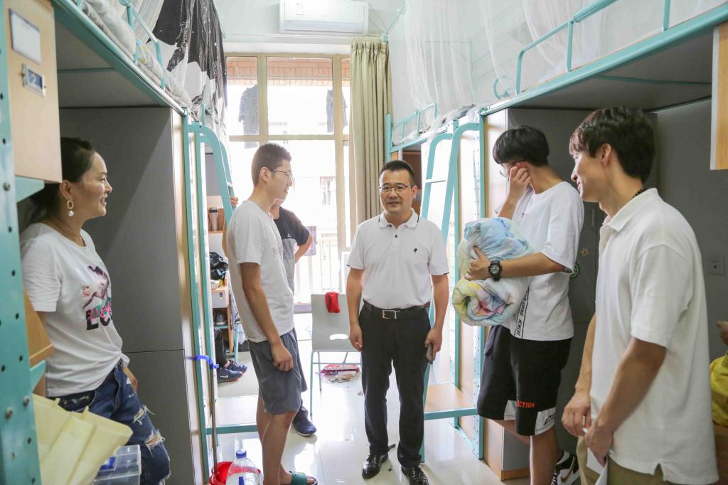 下午4时,学院党委书记潘国忠、党委副书记高国俊、党总支书记宣王威携辅导员分批次来到了学生公寓2号楼和8号楼,这里是人文学院新生在大学将要度过四年的家。走访过程中,领导们亲切地问候了新生们:“寝室还住的习惯么?”、“一个人来报道的啊?”“2138acom太阳集团的篮球馆很不错”一句句贴心的问候,真正地将关怀送进了新生的生活中,心坎里。同时也带着学院对他们的希冀,鼓励他们在学习上要努力,在生活上要自立。