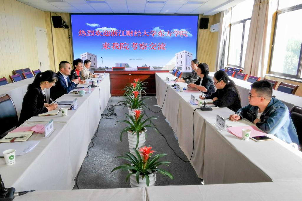 10月31日,浙江财经大学东方学院党委书记邵毅平、人力资源部部长刘畅一行4人来我院考察交流。党委书记潘国忠接待了来访客人,副院长李文莉,学院组织人事部负责人参加座谈会。