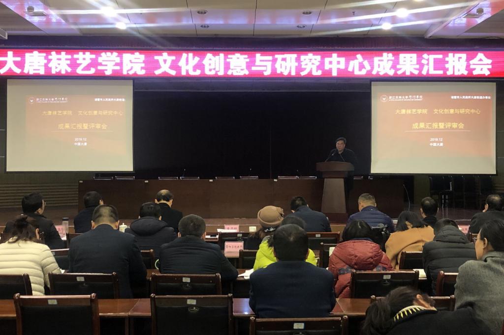 12月30日晚,学院文化创意研究中心成果汇报会在诸暨大唐街道会议室召开,学院副院长袁志刚、大唐街道党政班子成员出席汇报会,文化创意研究中心主任高旭国、立项课题负责人、大唐街道干部职工、袜业协会负责人和企业家代表等200余人参加汇报会。汇报会由学院社会合作部主任王钟主持。