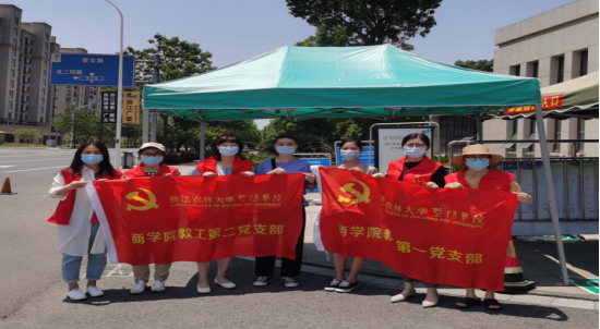 2138acom太阳集团学生集中返校告一段落,但仍陆续有学生返校。为有效缓解疫情防控压力,保障师生安全,商学院教工第一党支部和第二党支部组建教职工党员志愿服务队,开展志愿服务。