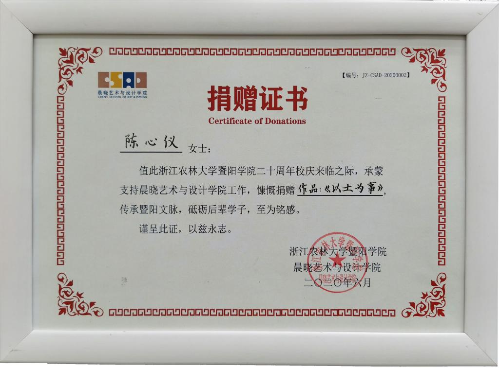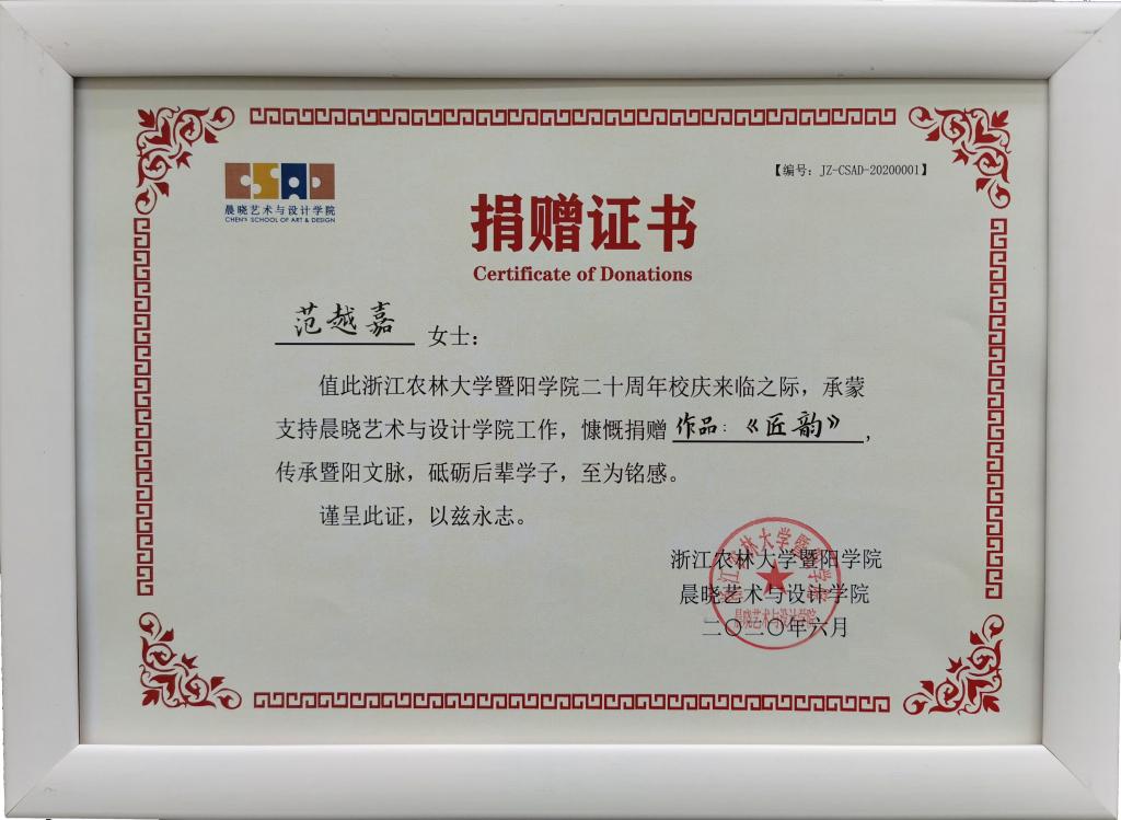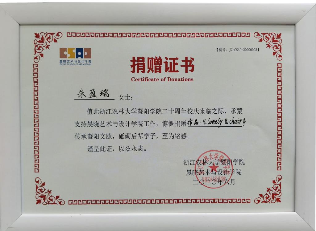 在学院二十周年院庆之际,我很荣幸能把这件诠释着自我创新的作品回馈给晨晓艺术与设计学院,同时希望它能载着我对院校的眷恋与两载光阴的铭心记忆,将我美好的时光保留下来。我受院校与老师们的教育之恩,才有足够的思维和能力去做出属于自己的毕设,所以这次的捐赠既是对院校的回馈,又是对自己的认可,时间最终将我的大学生涯定格在2020年,但我庆幸晨晓艺术与设计学院为我插上了艺术的希翼。