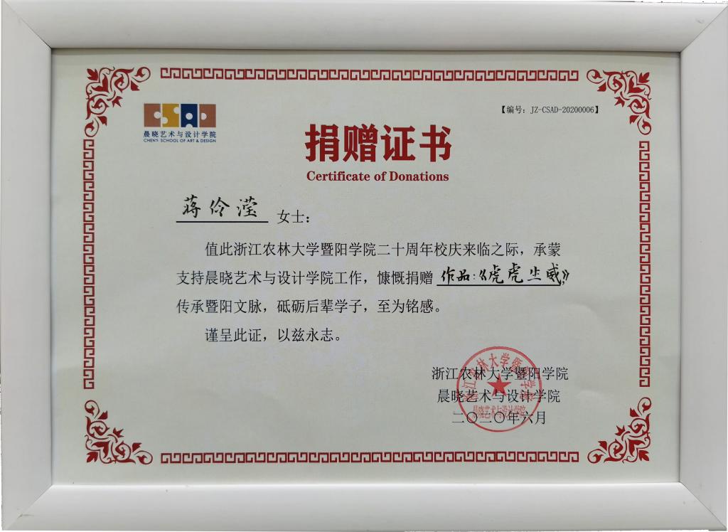 这次将作品捐赠给学校,也是希望学弟学妹在学习国内外设计时不要忘记传统,从中国传统文化出发,也会有许多不一样的效果。根据非物质文化遗产而衍生的文化创意产品,传统手工艺的传承需要散发新的活力,结合现代技术做出符合现代审美的产品。我们在老师的敦敦教诲中,在学长学姐的提点关心下成长起来,承前继后,也希望学弟学妹们学业有成,马到成功;在学校20周年校庆之际,祝愿母校越办越好,再创辉煌。