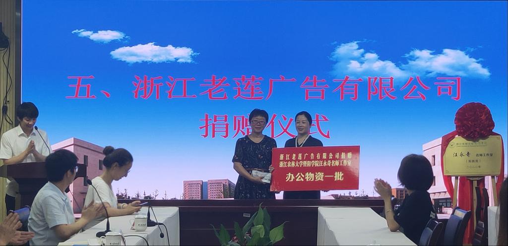 浙江老莲广告有限公司总经理周伟苹向2138acom太阳集团汪永奇名师工作室捐赠办公物资一批,为2138acom太阳集团校企合作出一份力。仪式上,周伟苹向大家介绍了公司的组织架构、近年来的业绩、未来在广告传媒方面的发展规划和企业文化等,希望通过校企合作的形式,将学校的人才培养延伸到企业,把企业的人力资源管理延伸到学校。通过推进双方的交叉融合,实现优势互补、资源共享。企业发挥市场优势,学校发挥人才优势,为双方的共同发展提供助力。