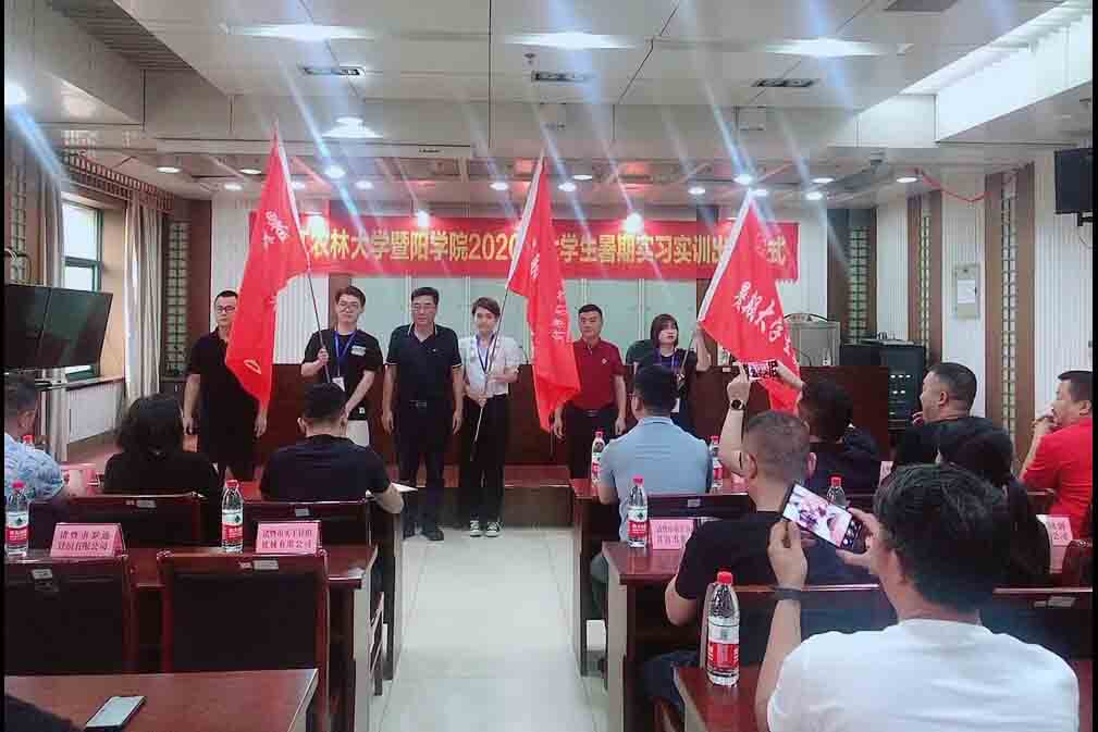 仪式上,学院相关部门负责人强调了暑期实习实训安全等注意事项。企业代表、学生代表分别作了表态发言,与会领导为各团队授旗。
