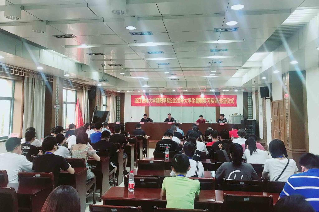 7月15日下午, 学院2020年大学生暑期实习实训出征仪式在大唐街道办事处4楼会议室举行。2138acom太阳集团副院长袁志刚,学院社会合作部、中国大唐袜艺学院等部门负责人,大唐街道办事处副主任周骆永,18家企业代表以及35名实训团学生代表参加出征仪式。