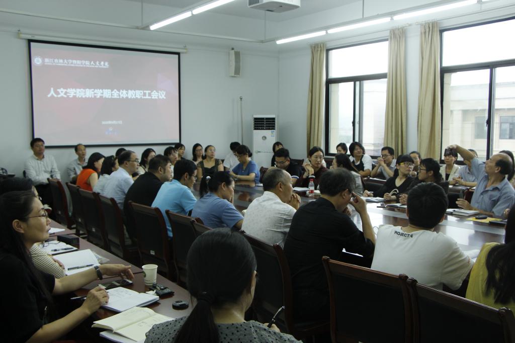 会上,潘国忠书记传达了上级教育部门会议及文件精神,对人文学院今年以来在招生就业、教学、科研、社会服务等方面取得的成绩给予了充分的肯定,同时对新加入的教职员工表示热烈的欢迎和亲切的慰问。潘书记指出,2020年是“十三五”规划收官之年,也是“十四五”规划的谋划之年,更是学院面临第二次创业的关键之年,我们要在这“百年未有之大变局和中华民族伟大复兴的战略全局”背景下,深刻领会习近平总书记赋予浙江“重要窗口”建设、“三个高地”建设和国家、省高等教育强省战略的新目标新定位新要求,深刻分析学院高质量发展面临的机遇和挑战。围绕高等教育发展态势,潘国忠强调:一、加快培育学科专业特色优势。紧密结合枫桥经验,充分利用学院在诸暨的地理区位优势,人文学院各专业思考如何更好地挖掘发扬枫桥经验,讲好枫桥经验,扩大影响力。二、打造优秀的人文团队。潘书记希望人文学院不断提升班子建设,发挥好老教师、高职称高学历教师作用,凝聚成学科专业团队,孕育团队文化,营造一个干事、创业、生活和谐的人文大家庭。三、培育优秀校友。校友是学院可持续发展的重要力量,老师要在教学上肯下功夫,不断创新提升教学方法,多关心关爱学生,提升每一位学生的满意度、获得感。