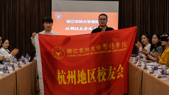 与会校友交流发言、建言献策,校友们感激母校的教育与培养,对学院近年来取得的成绩感到自豪,希望学院越办越好。会长朱儒颂代表全体校友做总结讲话,他深情回顾了自己毕业后的创业历程,勉励大家共同努力,把杭州校友会办成凝聚校友的平台,校友成长的助手,为母校的发展贡献力量。会议全票通过了杭州校友会会长、副会长、秘书长、副秘书长建议名单。李文莉向杭州校友会授旗并为杭州校友会会长、副会长、秘书长、副秘书长颁发聘书。