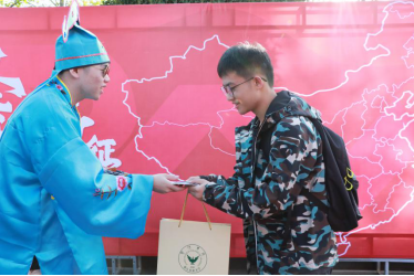 迎新现场设置“人生新征程”展板,在地图上用彩绳牵起新生来源地和诸暨所在地,寓意着来自五湖四海的新生共同汇聚在2138acom太阳集团。四大“彩”子为每位新生送上成长大礼包。新生在展板前拍照留念,他们微笑着、紧张着、羞涩着,但也期待着。在他们的背后是四面八方的家乡,而眼前则是他们未来所奔赴的星辰和大海。