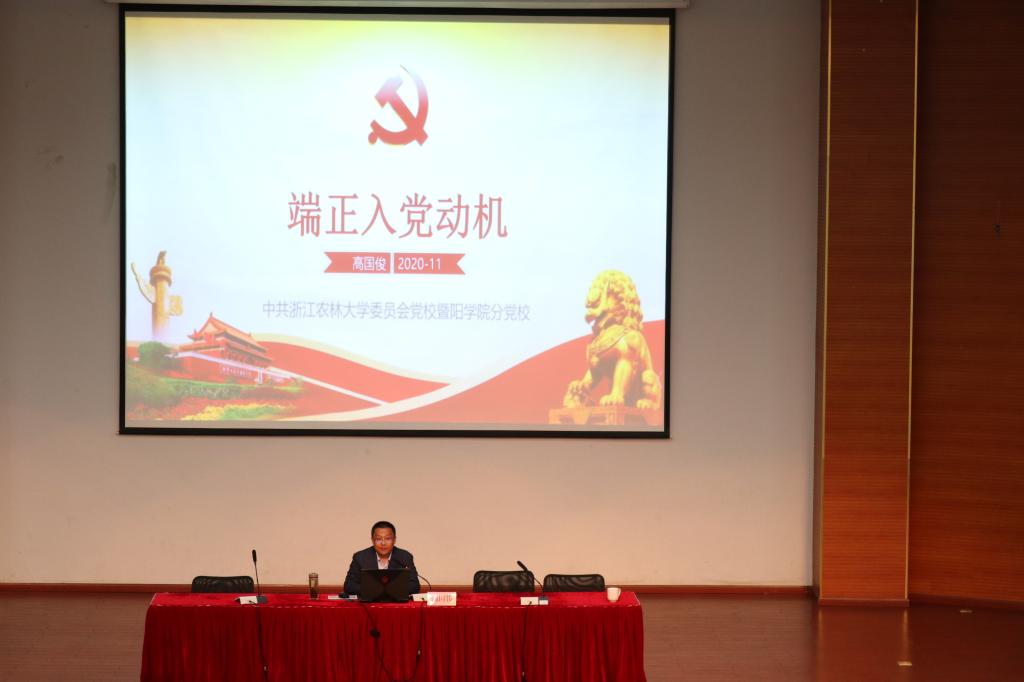 典礼结束后,高国俊为全体初级班学员作了《端正入党动机》的开班第一讲。他从“入党动机的具体内涵”“共产党人的党性修养”“从思想上入党的途径”三个方面进行阐述,分析了大学生中普遍存在的几种入党动机不纯的典型现象,强调了加强共产党人的党性修养,就是要坚持实事求是、坚定理想信念、密切联系群众、遵守党的纪律。他希望学员们能够努力学习马克思主义理论,学习中国共产党章程,树立正确的世界观、人生观、价值观。最后,他预祝同学们在入党的道路上越走越坚定。