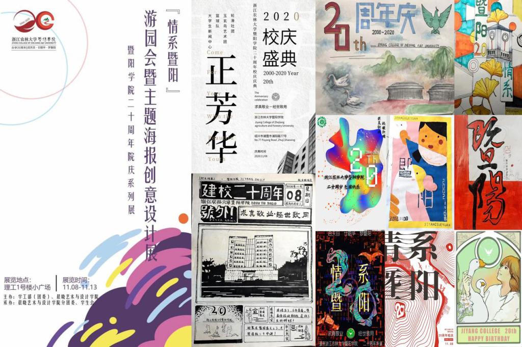 砥砺奋进二十年,追求卓越绘新篇。2020年11月8日,学院迎来办学20周年院庆。本次院庆以“启天目 廿韶华 梦暨阳”为主题,晨晓艺术与设计学院以师生色彩艺术展览、校友侃谈会、系列作品展、游园活动等多项活动庆祝生日。
