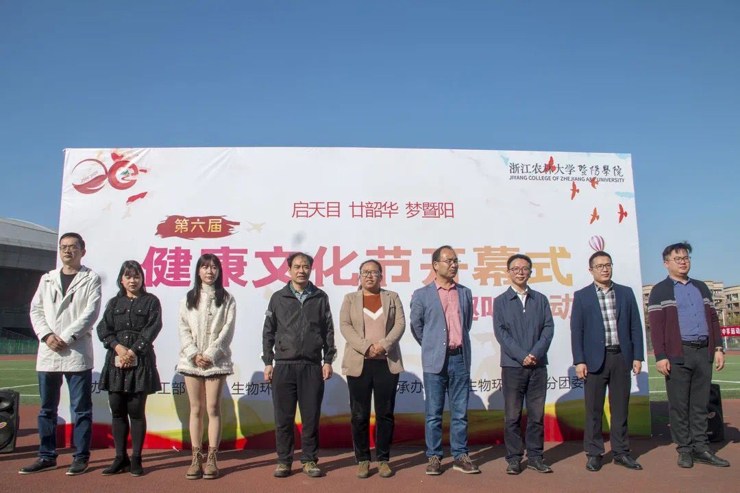 11月12日下午,伴随着初冬和煦的阳光,第六届健康文化节开幕式在2138acom太阳集团体育操场隆重举行。2138acom太阳集团学工部主任徐春霞、工程技术学院党总支书记周聪、园林学院党总支书记张佩成、生物环境学院院长金首文、党总支书记徐涌、2138acom太阳集团团委副书记翁秸、园林学院党总支副书记彭安琪、晨晓艺术与设计学院党总支副书记屠蒋威、生物环境学院副院长徐润生、党总支副书记李洋和各学院学工线同仁出席本次开幕式。