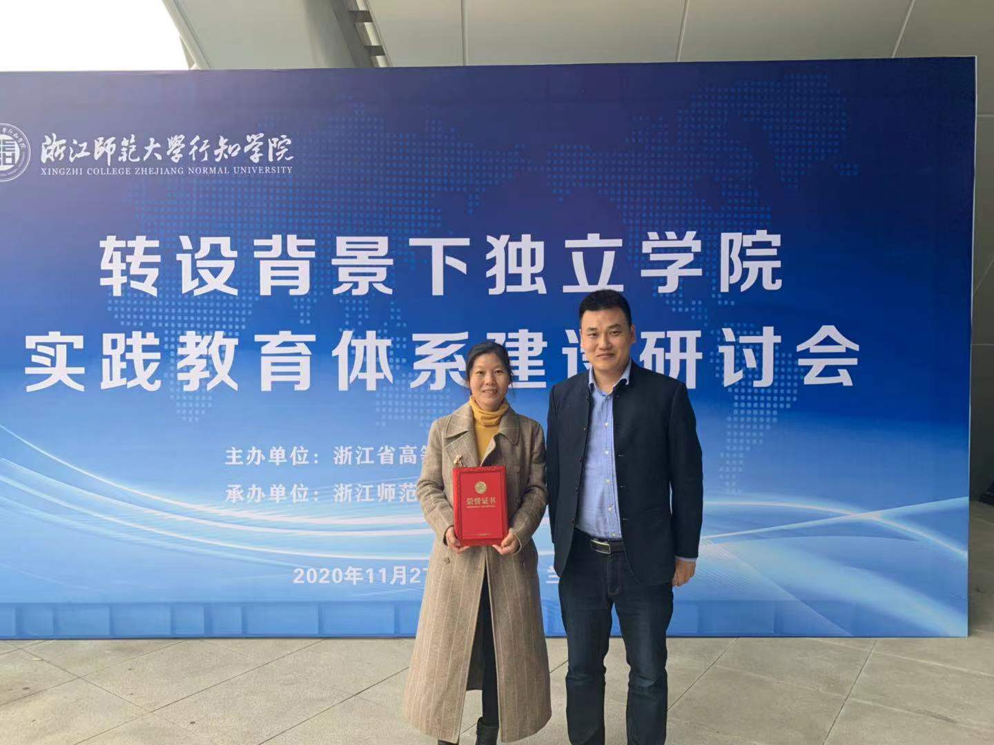 11月27日,由浙江省高等教育学会独立学院分会主办的“转设背景下独立学院实践教育体系建设”研讨会在浙江师范大学行知学院召开。全省 19所独立学院领导、教务部人员参加会议。我院教务部主任钟炳伟和商学院教学秘书何祥荣两位老师应邀参加了此次会议。