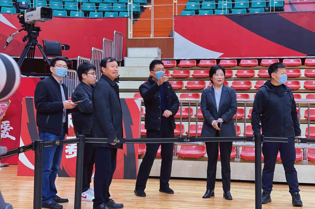 在听取体育中心负责人对于场馆布置和相关安全措施工作的汇报后,俞越一行现场检查了场馆的各类设施设备运行、疫情防控及场地保障人员配备等情况。俞越强调,场馆要高度重视安全问题,要拧紧每一颗螺丝钉,不放过任何一个细节,严抓疫情防控,加强场地服务保障,优化设施设备,提高场馆运行效能,确保比赛期间零失误、零差错,全力护航CBA赛事顺利进行。