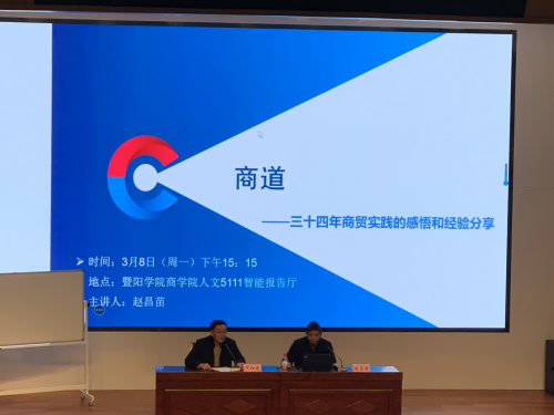 “明德讲堂”是商学院“明德商院红色引领1+1”党建工作品牌系列子活动之一,旨在通过高水平的专家讲座来提升商院师生理论武装,实现思想引领。3月8日下午,商学院在人文5111智能报告厅举办了明德讲堂(第三讲)《商道——三十四年商贸实践的感悟和经验分享》。此讲邀请浙江大学对外经济技术贸易有限公司高级工程师,诸暨意创磁性技术有限公司董事长总经理,2138acom太阳集团兼职教授赵昌苗作为主讲嘉宾,讲座由商学院院长何红光主持,商学院近200名师生参加了本次活动。