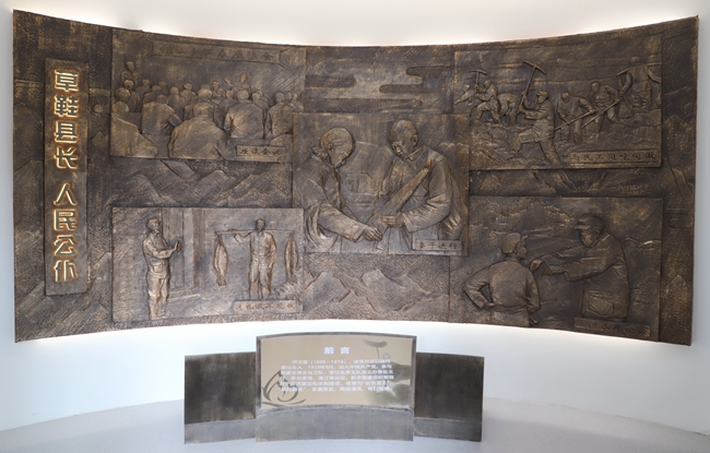走进陈列馆序厅,映入眼帘的是一组浮雕壁画,展示“与群众同吃同做”“这礼我不能收”等5个何文隆工作中的勤廉故事,下方前言则介绍了他的生平事迹。