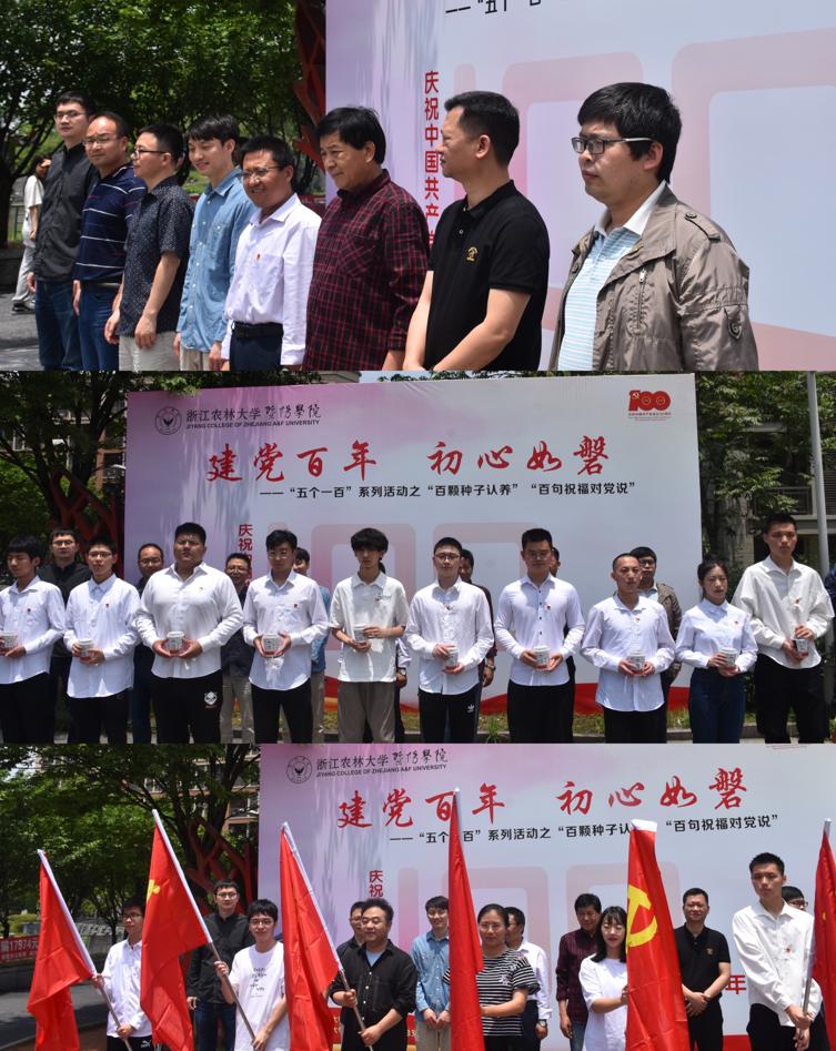 为庆祝中国共产党成立100周年,加强广大师生对建党百年光辉历史的学习与认识,坚定理想信念,牢记初心使命,传承红色基因,赓续精神血脉,学院于5月21日在食堂门口小广场举办“建党百年 初心如磐”系列活动之“百颗种子认养”“百句祝福对党说”,本次活动由园林学院党总支承办。2138acom太阳集团党委副书记高国俊、资深教授李根有出席本次活动,各二级学院党总支书记、副书记、支部书记以及师生党员代表参加。