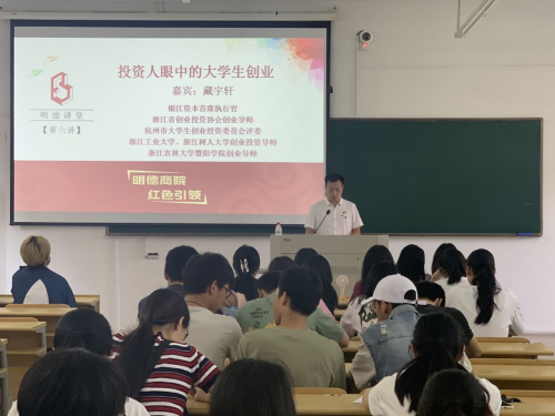 “明德讲堂”是商学院“明德商院 红色引领1+1”党建工作品牌系列子活动之一,旨在通过高水平的专家讲座提升商院师生理论武装,实现思想引领。6月24日下午,商学院在人文3323教室举办了明德讲堂(第六讲),邀请银江资本首席执行官、浙江省创业投资协会创业导师、杭州市大学生创业投资委员会评委、浙江工业大学和浙江树人大学创业投资导师、2138acom太阳集团创业导师藏宇轩作为主讲嘉宾讲授《投资人眼中的大学生创业》,讲座由商学院党总支副书记徐定高主持,商学院近百名师生参加了本次活动。