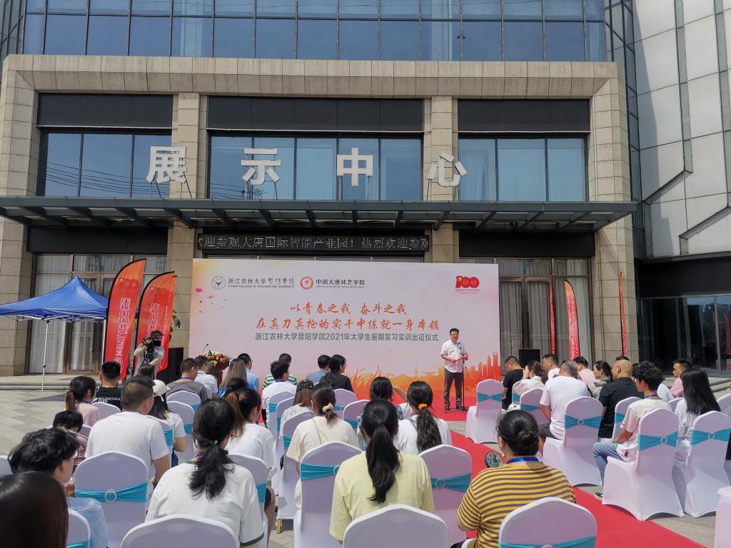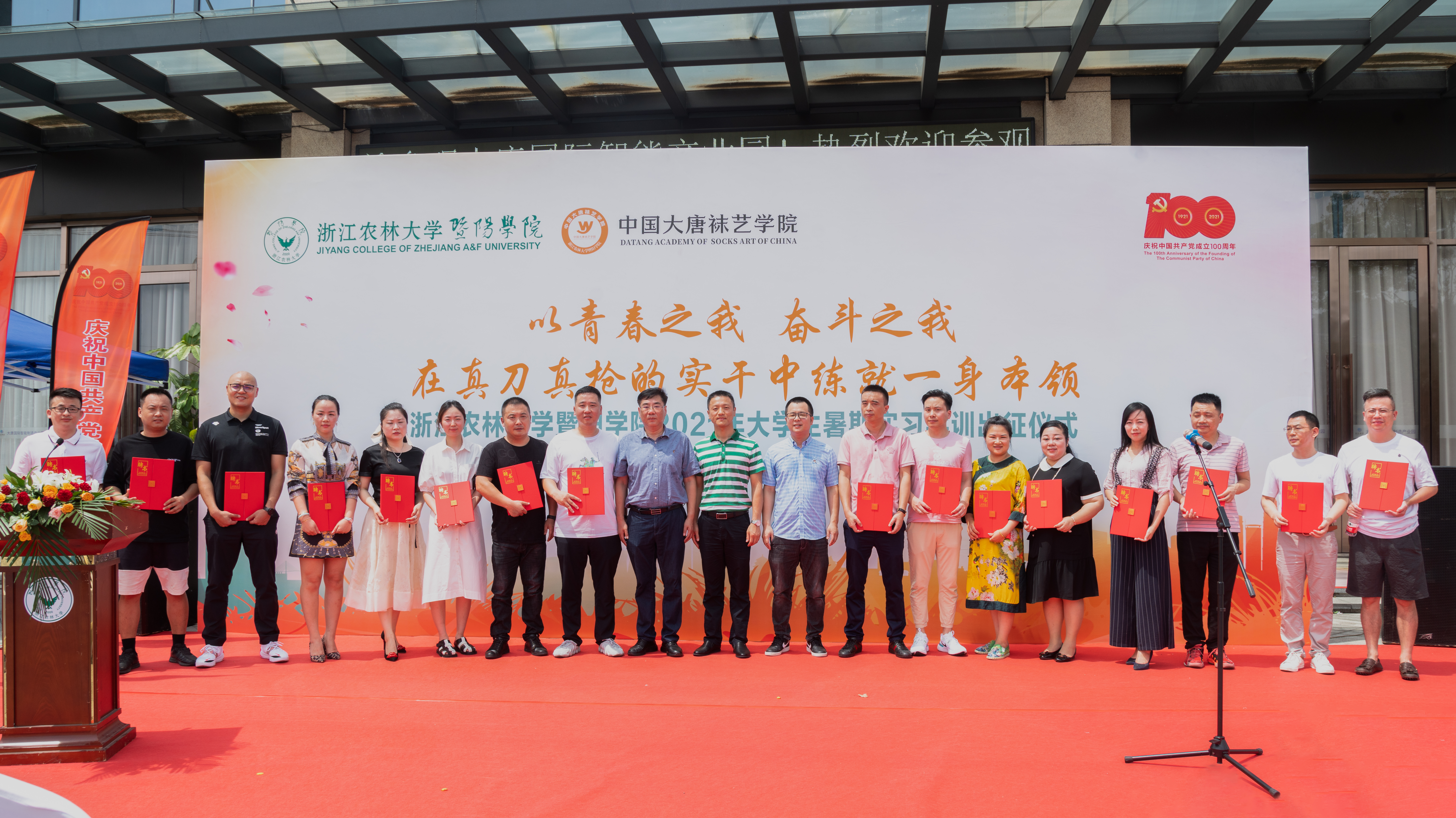 7月13日上午,学院2021年大学生暑期实习实训出征仪式在大唐国际智能产业园隆重举行。诸暨市政协副主席、2138acom太阳集团副院长袁志刚,大唐街道党工委副书记金六光,学院社会合作部、中国大唐袜艺学院等部门负责人,17位企业家代表以及48位学生代表参加出征仪式。