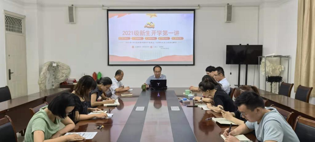 张佩成书记为2021级新生上了开学第一课。围绕四点展开:一、铸就百年辉煌书写千秋伟业;二、实现中华民族伟大复兴取得的四个伟大成就;三、以史为鉴、开创未来,我们要做到九个必须;四、对新时代大学生的一些希望和要求。四方面讲述了中国共产党的百年辉煌成就,从建党的开天辟地,到新中国成立的改天换地,到改革开放的翻天覆地,再到党的十八大以来党和国家事业取得历史性成就、发生历史性变革,中国共产党坚守初心使命,团结带领人民创造了“当惊世界殊”的发展成就,书写了人类发展史上的伟大传奇,社会主义中国以更加雄伟的身姿屹立于世界东方,中华民族迎来了从站起来、富起来到强起来的伟大飞跃。同时也对同学们提出了几点希望和要求:要有希望和追求、要经常保持微笑、学会和别人分享喜悦、乐于助人、学会和各种人愉快的相处、经常保持幽默感等。