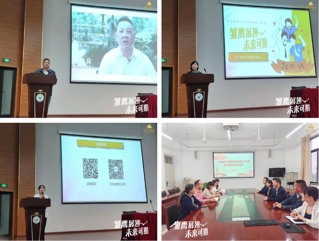 为进一步拓展就业市场,拓宽就业渠道,努力为毕业生提供更多就业机会,10月13日晚,园林学院邀请杭州滨江服务集团有限公司来校举办专场招聘宣讲会。全体2022届毕业生聆听了本次宣讲。