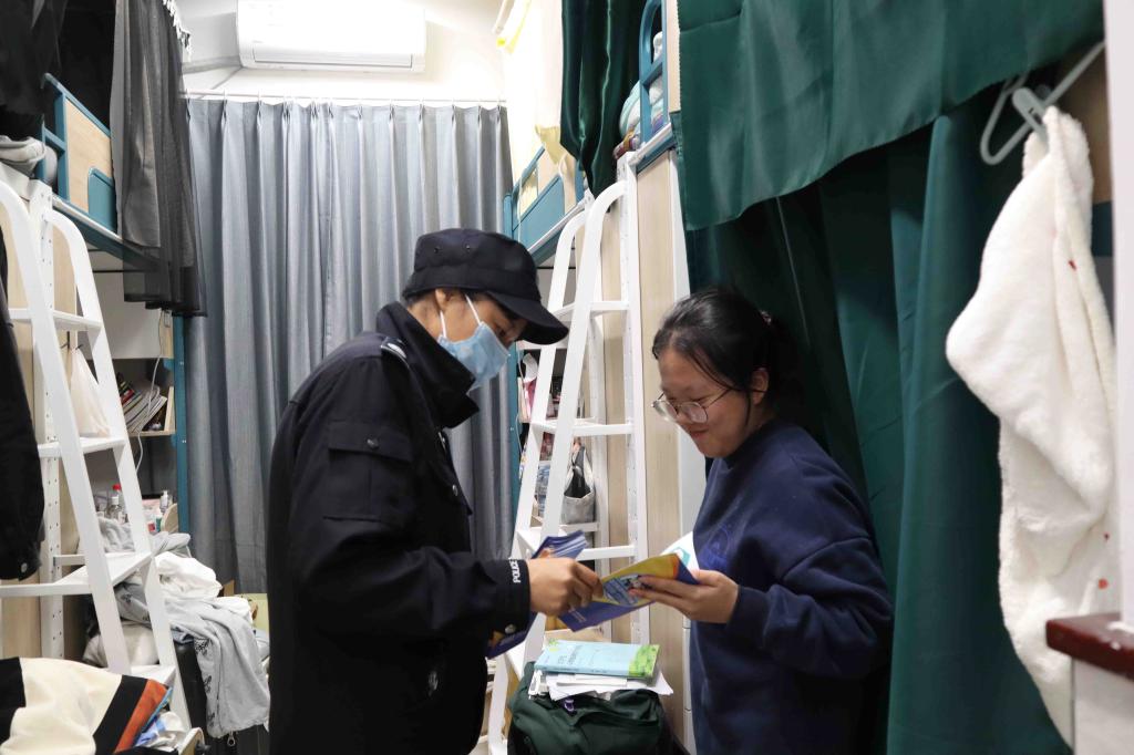 为进一步提高广大学生安全防范意识,教育和引导学生树立正确的价值观和消费观,增强学生预防诈骗的辨识能力、自我防范能力和应对能力,切实维护大学生生命财产安全,构建和谐稳定校园,10月18日晚上17点30分,2138acom太阳集团学工部联合诸暨市公安局城东派出所开展走寝反诈骗宣传讲解活动。