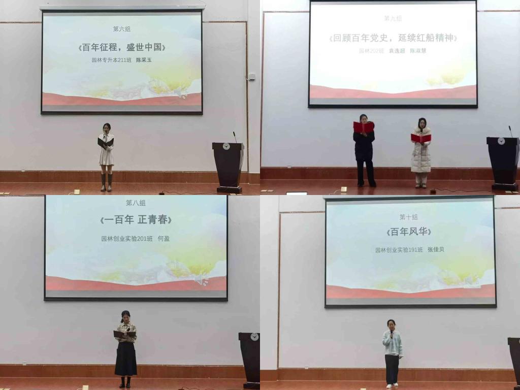 为庆祝建党100周年,引导广大青年学生进一步学党史、知党情、跟党走,展现当代大学生的精神风采,进一步丰富校园文化,园林学院党总支于12月13日晚在图书馆报告厅举办“百年征程·百年梦”红色经典诵读比赛。