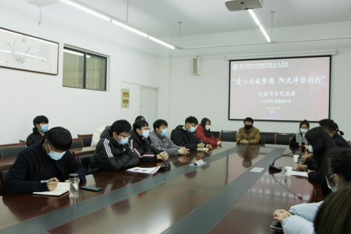 12月30日下午,人文学院于人文3502举办“爱心成就梦想,阳光伴你同行”公益项目交流会。人文学院院长刘伯茹,人文学院、马克思主义学院党总支书记宣王威,姚江镇中心学校校长王海燕,墨城湖小学校长陈钧炳,人文学院辅导员老师及20位志愿者代表参加活动。