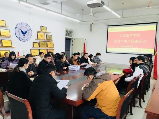 2022年1月13日,工程技术学院在理工3402会议室召开2021年度领导班子述职大会。组织人事部相关老师到会指导,工程技术学院全体教职工参加会议。会议由党总支书记周聪主持。