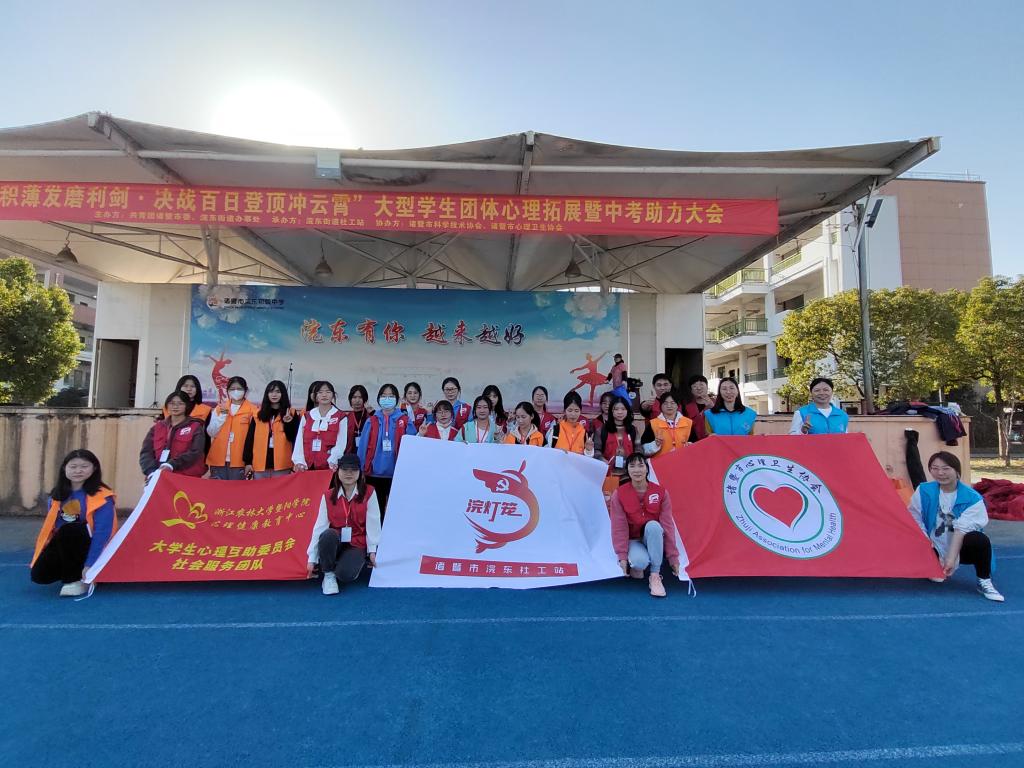 风和日丽,万物勃发;莘莘学子,壮志豪情。3月9日下午,我院组织学生志愿者赴浣东初中,参与由诸暨市心协举办的大型团体心理拓展活动。经大学生心理互助委员会、阳光志愿者总队前期招募与培训,共有20名志愿者参与此次活动。