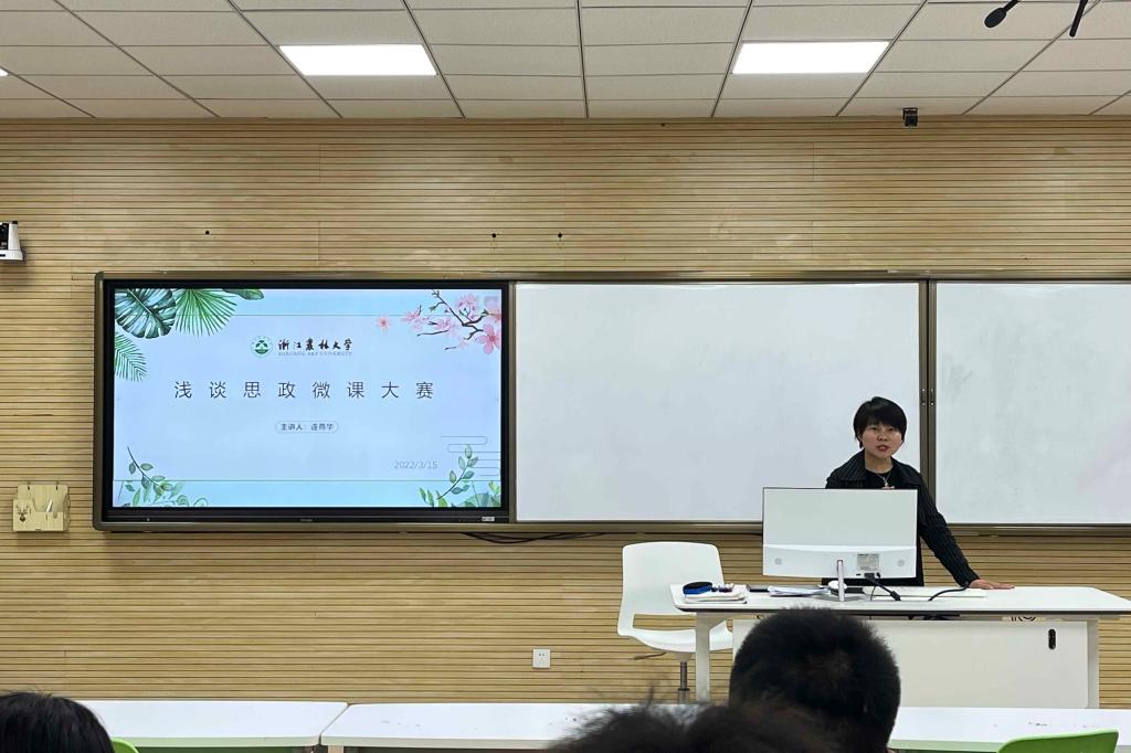 连燕华老师介绍了思政微课大赛大致情况,就参赛心路历程进行了分享:立意要有层次感,结合热点以小见大,善于以小切入点展现大思政;文稿要做到用词准确精彩,善于抓住目光,给人留下深刻印象;呈现要注重多种形式相结合,提高现场宣讲的感染力。另外,她用“台上一分钟,台下十年功”表达了辅导员认真备赛的态度和千锤百炼的意志。