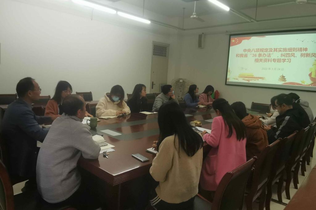 党总支书记张佩成带领全体教师认真学习了学院下发的中央八项规定及其实施细则精神和我省“36条办法”,纠四风、树新风相关资料,要求全体员工思想上高度重视,行动上时刻对照,做到清正廉洁,坚决筑牢思想防线,努力做新时代的四有好老师。带头领学了十三届全国人大五次会议精神及全国政协十三届五次会议精神。会议指出,这次全国两会是在我国进入全面建设社会主义现代化国家、向第二个百年奋斗目标进军新征程的重要时刻召开的重要会议,习近平总书记在两会期间发表的重要讲话,为我们做好工作指明了方向、提供了根本遵循。要求全体教职工要认真学习贯彻两会精神,要自觉把思想和行动统一到党和国家的决策部署、统一到两会精神上来,自觉把两会精神融入到日常的教育教学工作及学生管理和服务工作中去,努力提高教书育人本领。