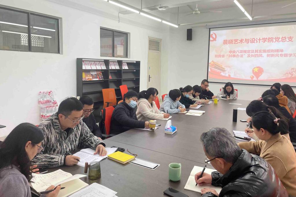 晨晓艺术与设计学院举行中央八项规定及其实施细则精神和我省“36条办法”及纠四风、树新风专题学习会