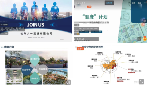 参加此次招聘会的有浙江东大环境工程有限公司、绍兴市第一园林工程有限公司、杭州大一建设有限公司,涉及专业有园林、环境设计、土木工程、建筑设计与管理等。线上招聘会上,各个用人单位“直播带岗”,通过线上视频的方式向我院2022届毕业生展示企业的人才政策、岗位需求、发展前景,并进行了线上互动与交流。