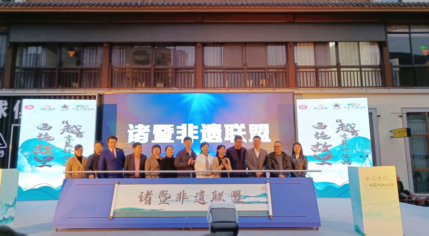 启动仪式中,石杭科受邀上台并与其他几位代表共同宣布诸暨非遗联盟的正式成立。非遗兴乡大巡游活动对非遗与旅游的融合发展、乡村的乡风文明建设、民众的精神文化生活、实现共同富裕等,都具有着不可替代的作用。