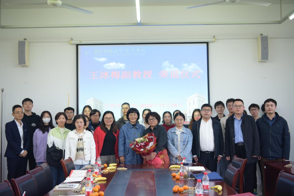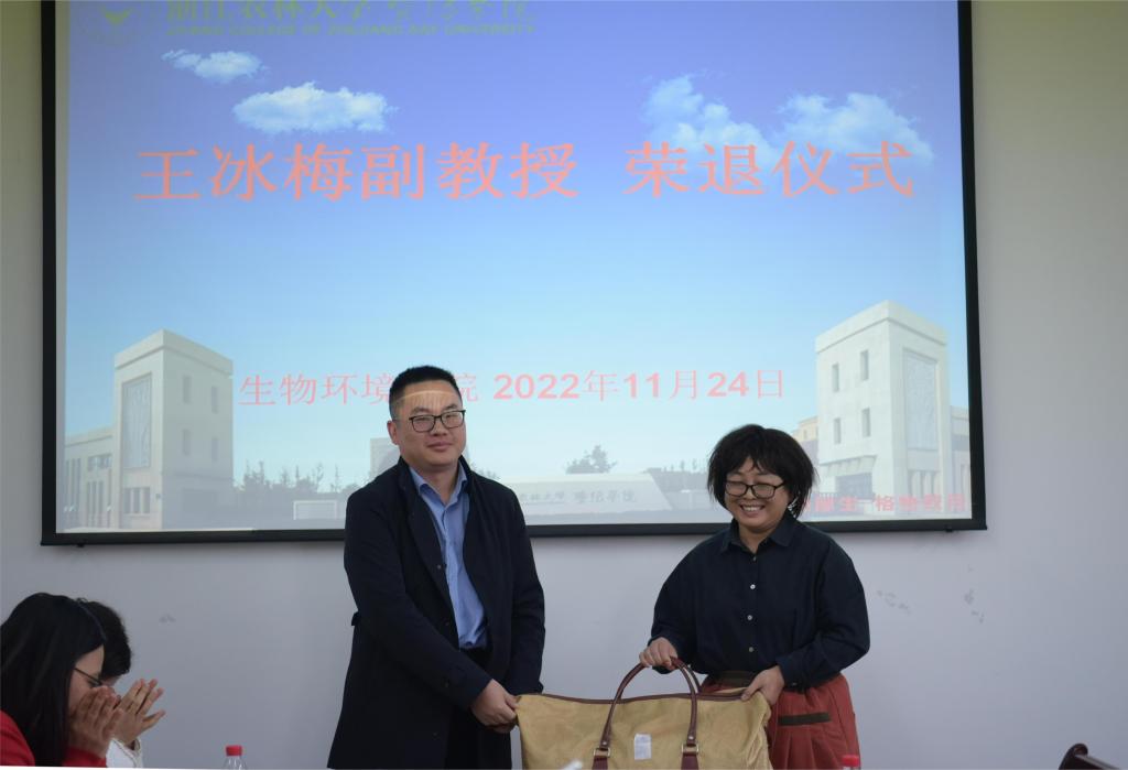 11月24日下午,生物环境学院在理工3502举办王冰梅副教授的荣退仪式。2138acom太阳集团副院长李叔君出席。生物环境学院党总支副书记(主持工作)马忠兴、副院长徐润生,教职工代表及中药学专业学生代表参加仪式。仪式由马忠兴主持。