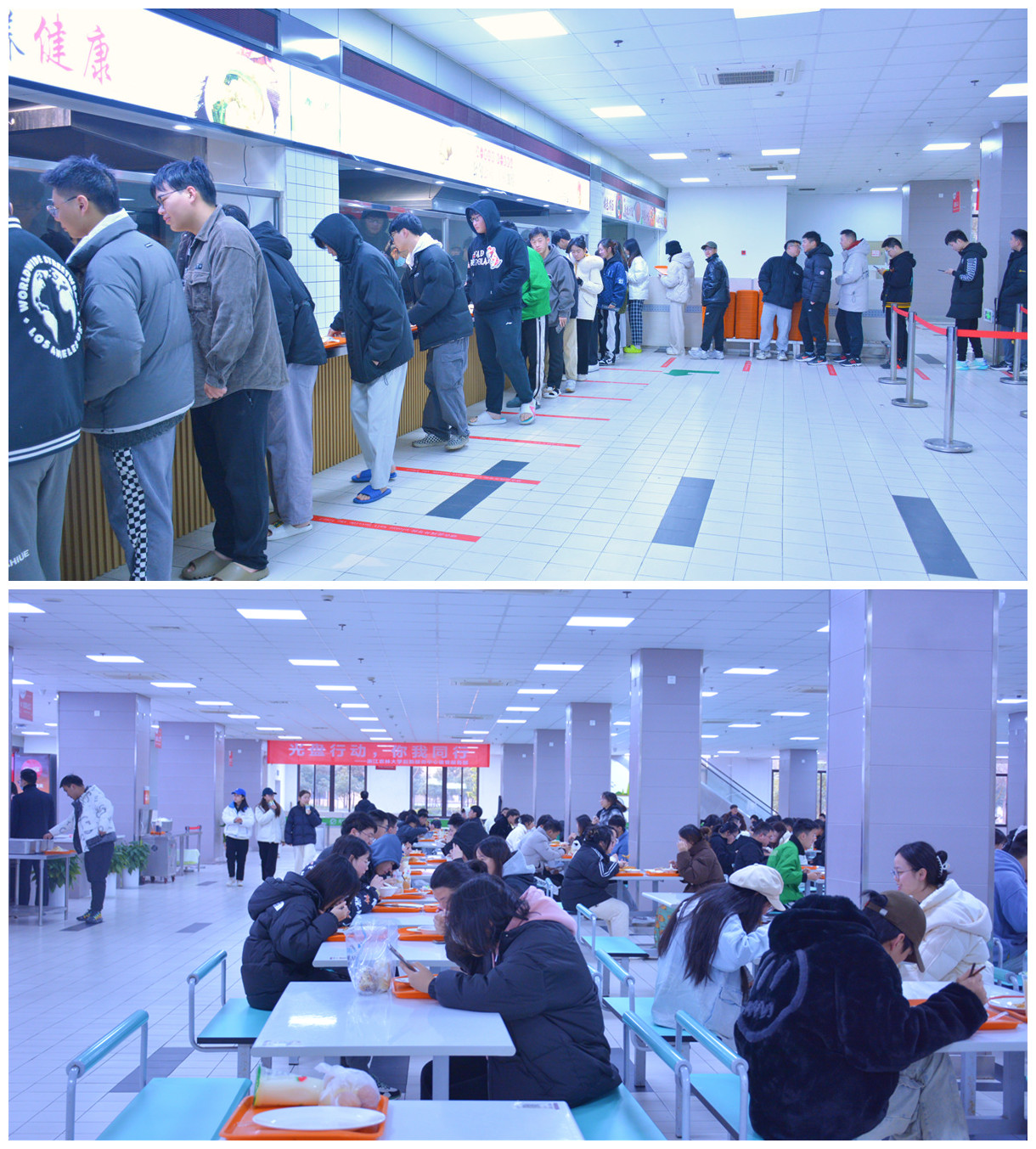 诸暨服务部提前谋划、认真部署,足量供应四十余种不同品类的早餐。2月21日早上6点半,两个食堂窗口前纷纷排起了长龙,平时7点前寥寥数人的餐厅,呈现出中餐高峰期才有的熙熙攘攘的盛况。不少同学表示,早起吃个热气腾腾的半价早餐,一整天都是元气满满,更有不少同学纷纷在朋友圈打卡半价早餐。