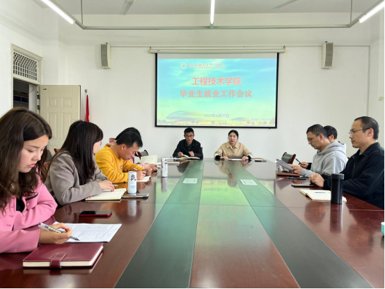 为深入学习贯彻党的二十大精神,落实党中央、国务院“稳就业”“保就业”决策部署,抢抓毕业关键期,确保2023届毕业生顺利毕业、高质量就业。4月27日下午,工程技术学院在理工3402会议室召开2023届毕业生就业工作会议。工程技术学院院长彭樟林,2023届毕业班辅导员、班主任参加会议。会议由工程技术学院党总支书记周聪主持。