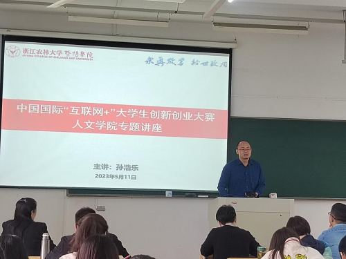 南京理工大学副教授孙浩乐受邀为我院教师作中国国际“互联网+”大学生创新创业大赛专题讲座“‘互联网+’进人文”。本次讲座主要围绕赛事解读、评审规则以及人文社科类院校如何出成绩等内容展开。孙浩乐从大赛背景、大赛目的和任务、大赛影响力、大赛价值、赛道解析、项目备赛等方面对赛事进行了介绍,就高校主赛道核心评审指标和红旅赛道项目评审要点进行了解析,为人文社科类推荐了几类赛道,并赏析了金奖项目作为参考。他表示,学院各个层面都需要重视项目,慢慢地孵化项目,目标先定到省赛然后再冲国赛。