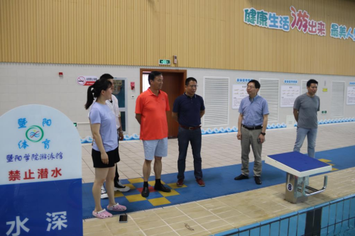 6月1日下午,国家游泳奥运冠军教练朱志根莅临学院体育中心游泳馆指导工作,副院长金松恒,体育中心、体育军训部相关负责人陪同。