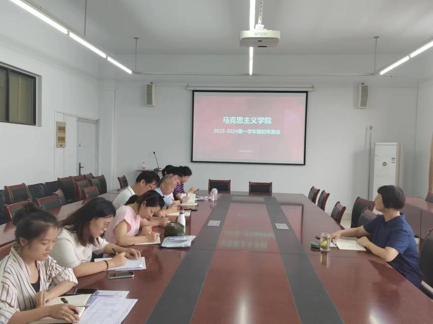 9月3日,马克思主义学院召开2023-2024第一学期初工作布置会,会议由马克思主义学院副院长雷梅珍主持,全体思政课教师参加会议。