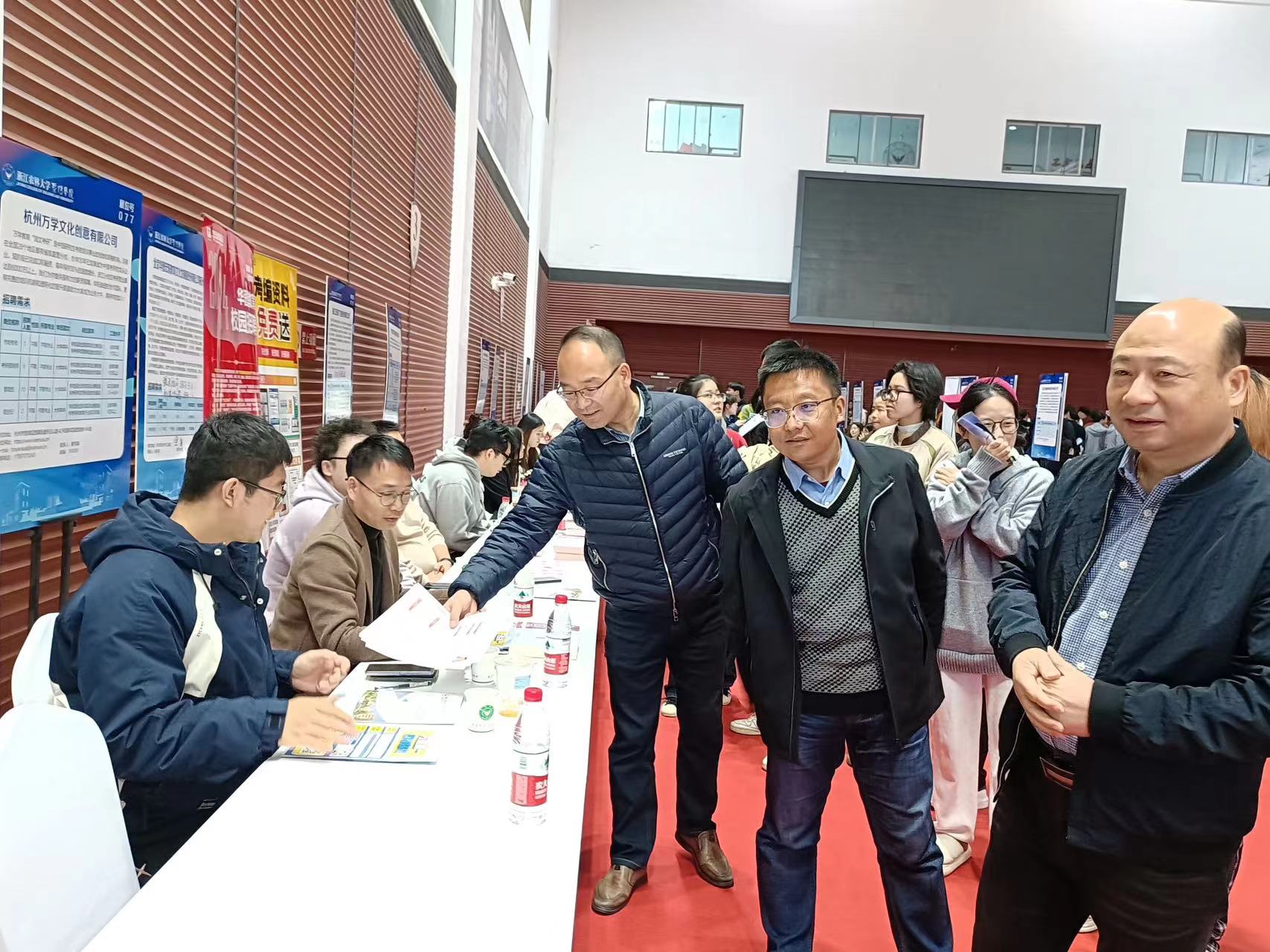 为切实做好学院2024届毕业生就业工作,拓宽毕业生就业渠道,提高学院毕业生留在诸暨工作的积极性,11月18日,由学院学工部、诸暨市人社局、绍兴市人社局联合举办的学院2024届毕业生校园招聘会在网球馆举行。学院党委副书记高国俊,诸暨市人力资源和社会保障局副局长应仲九出席并到场指导工作。学工部相关负责人,各二级学院党总支书记、副书记,毕业班辅导员代表、学院职业规划与就业指导团队教师代表,各年级学生参加了此次招聘会。