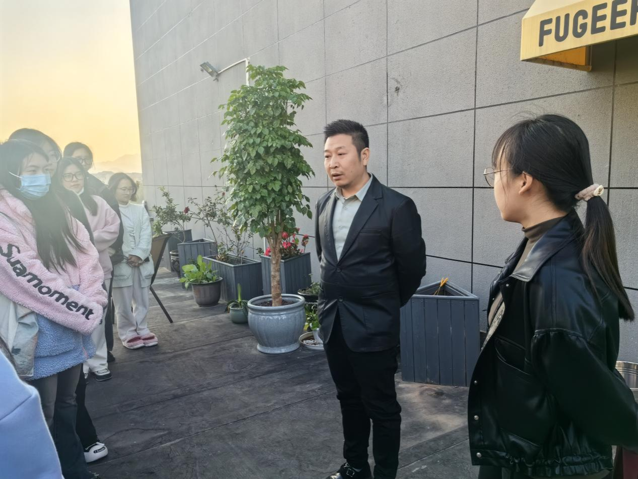 行程最后,企业负责人黄圣强与到访学员举行座谈,他详细向到访学院介绍了企业产品的设计理念和品牌定位,鼓励学生深入袜业产业集群走走看看。他非常肯定当代大学生新颖的创意理念,并向产业班学员发出邀请,希望同学在日后多参与企业调研及实习工作,为行业增添活力。