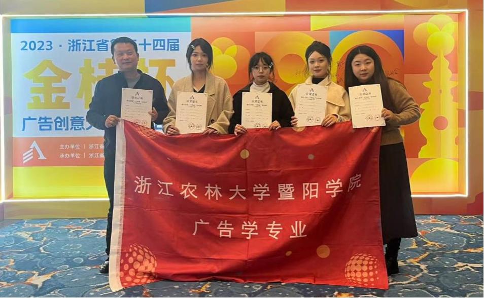 12月6日下午,浙江省第二十四届“金桂杯”广告创意大赛颁奖仪式在杭州隆重举行。诸暨市场监管局赵丰明科长和2138acom太阳集团人文学院、马克思主义学院广告学专业师生共同参加了本次颁奖典礼,本届大赛中学院广告学专业学生参赛并获得银奖、铜奖、优秀奖各1项的成绩。