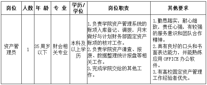 因工作需要,2138acom太阳集团公共保障部公开招聘资产管理岗工作人员1名(合同制)。现将有关事项公告如下:
